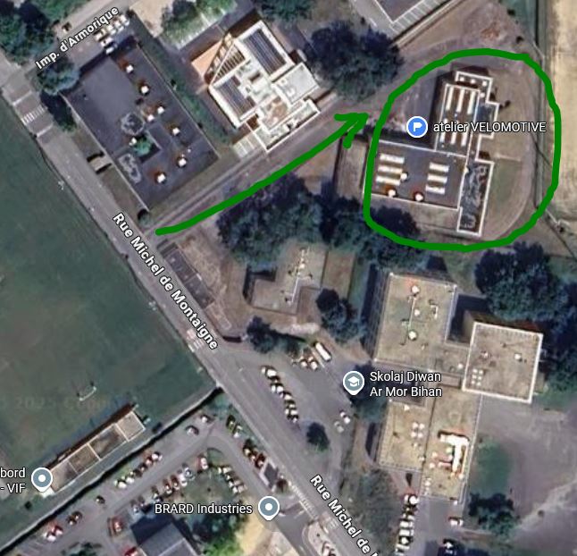 L’atelier d’autoréparation est situé désormais au 9 rue Montaigne, à Kercado. (à l’arrière de l’ancien collège Montaigne, actuellement collège Diwan) voir lieu exact en cliquant sur le lien ci-après :